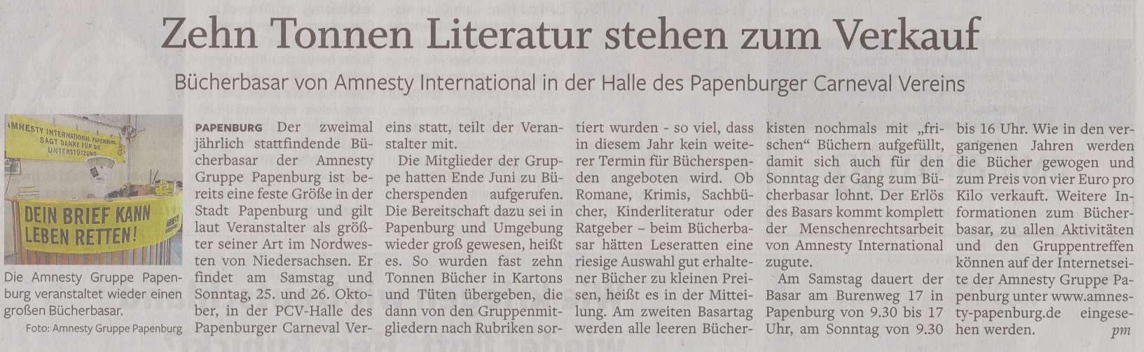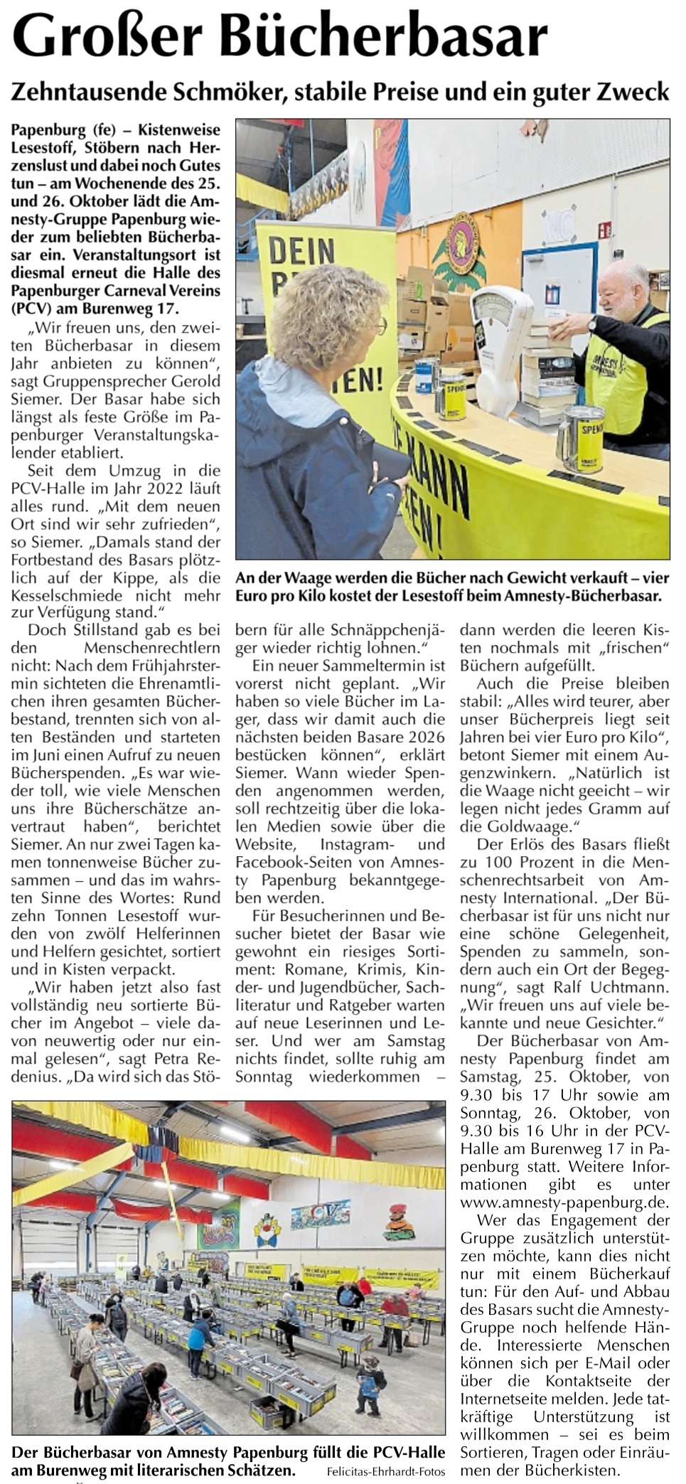 23.04.2025: Bücherbasar von Amnesty Papenburg: Ems Zeitung