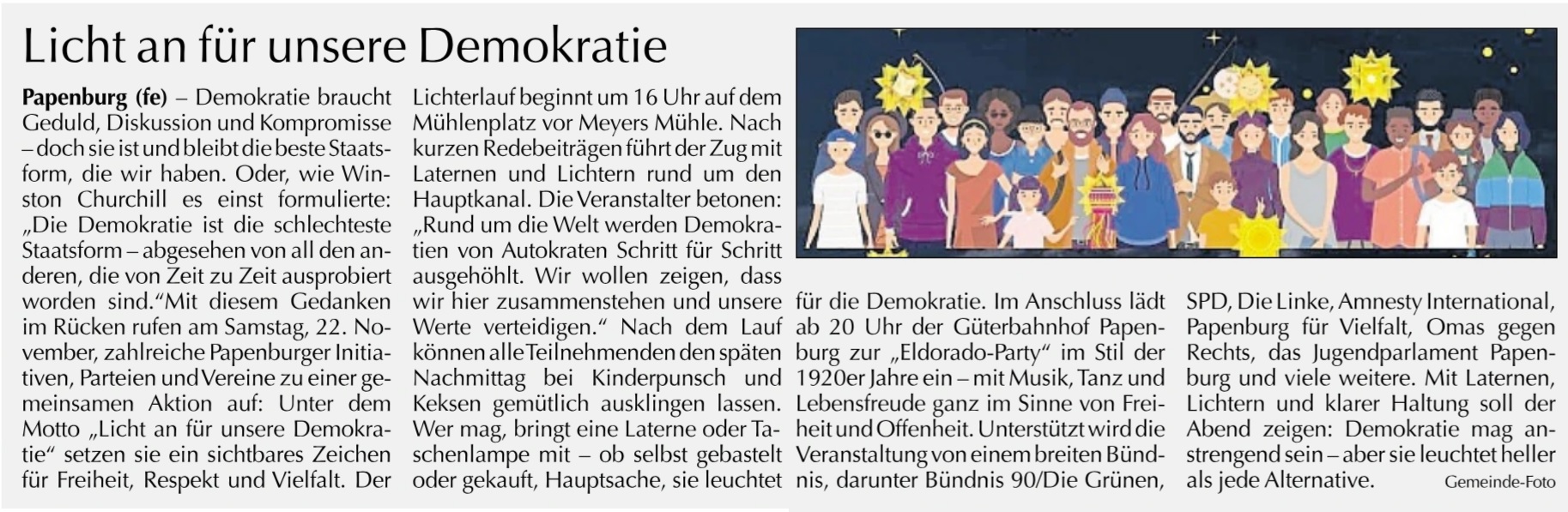 16.11.2025: Licht an für unsere Demokratie – Lichterlauf in Papenburg: EL-Kurier Papenburg