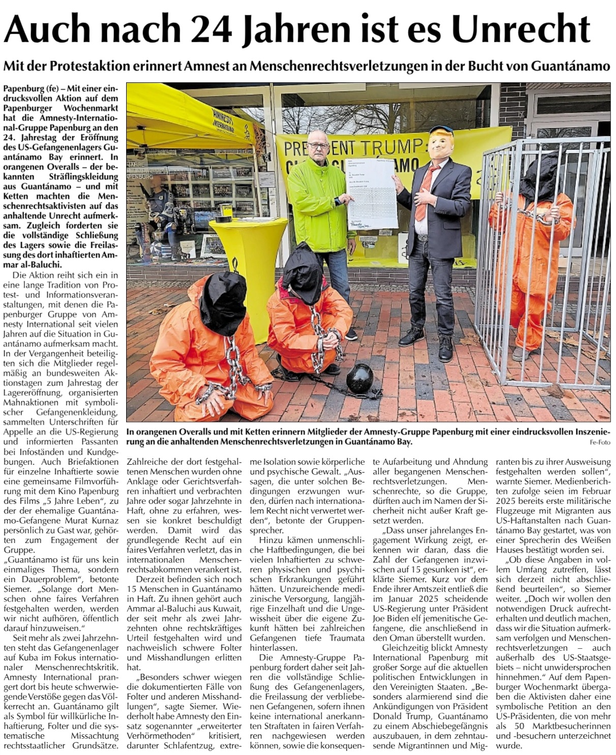 09.01.2026: Guantánamo: Amnesty Protestaktion verschoben: Ems Zeitung