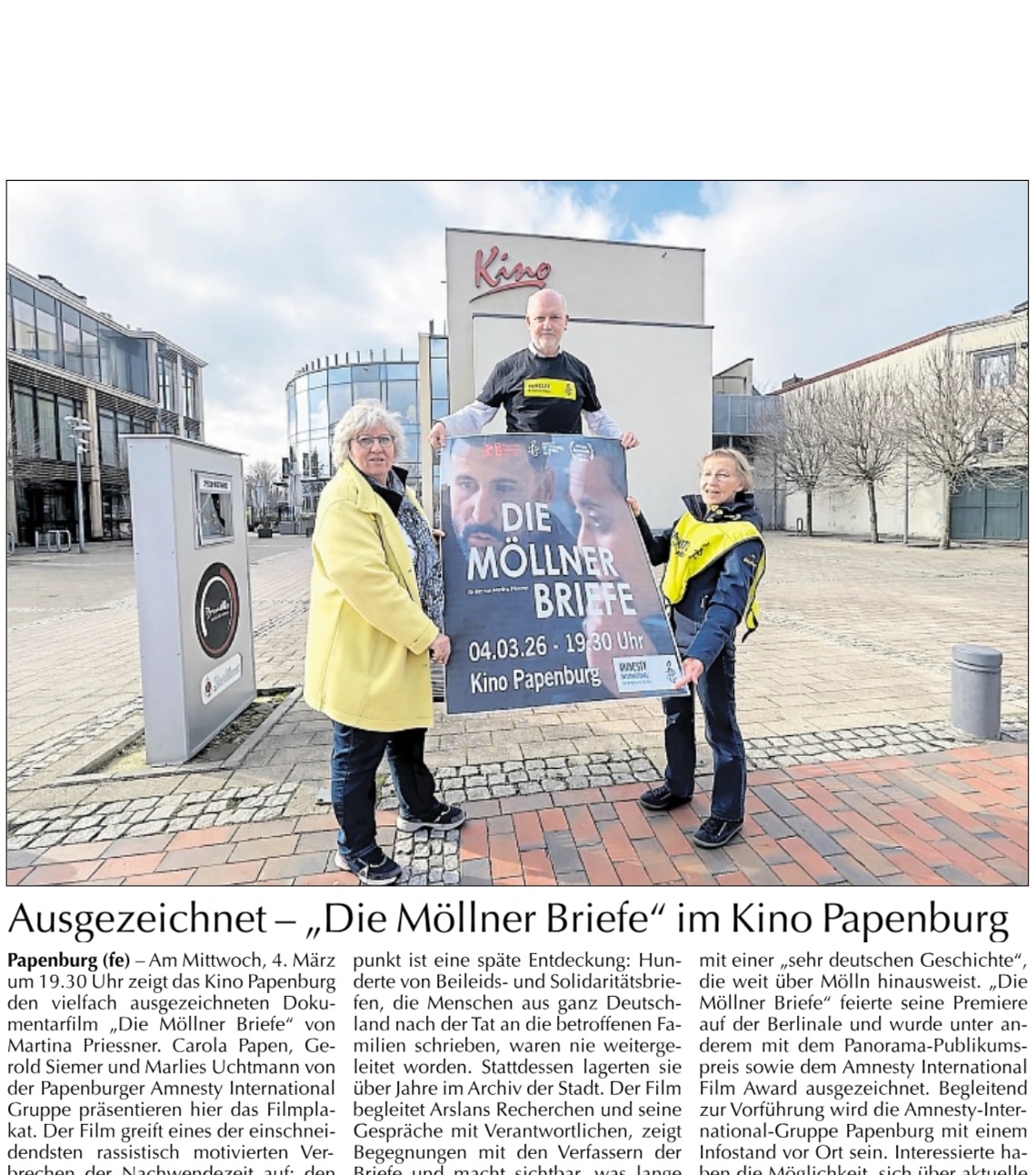 28.02.2026: Ausgezeichnet – „Die Möllner Briefe“ im Kino Papenburg: EL-Kurier