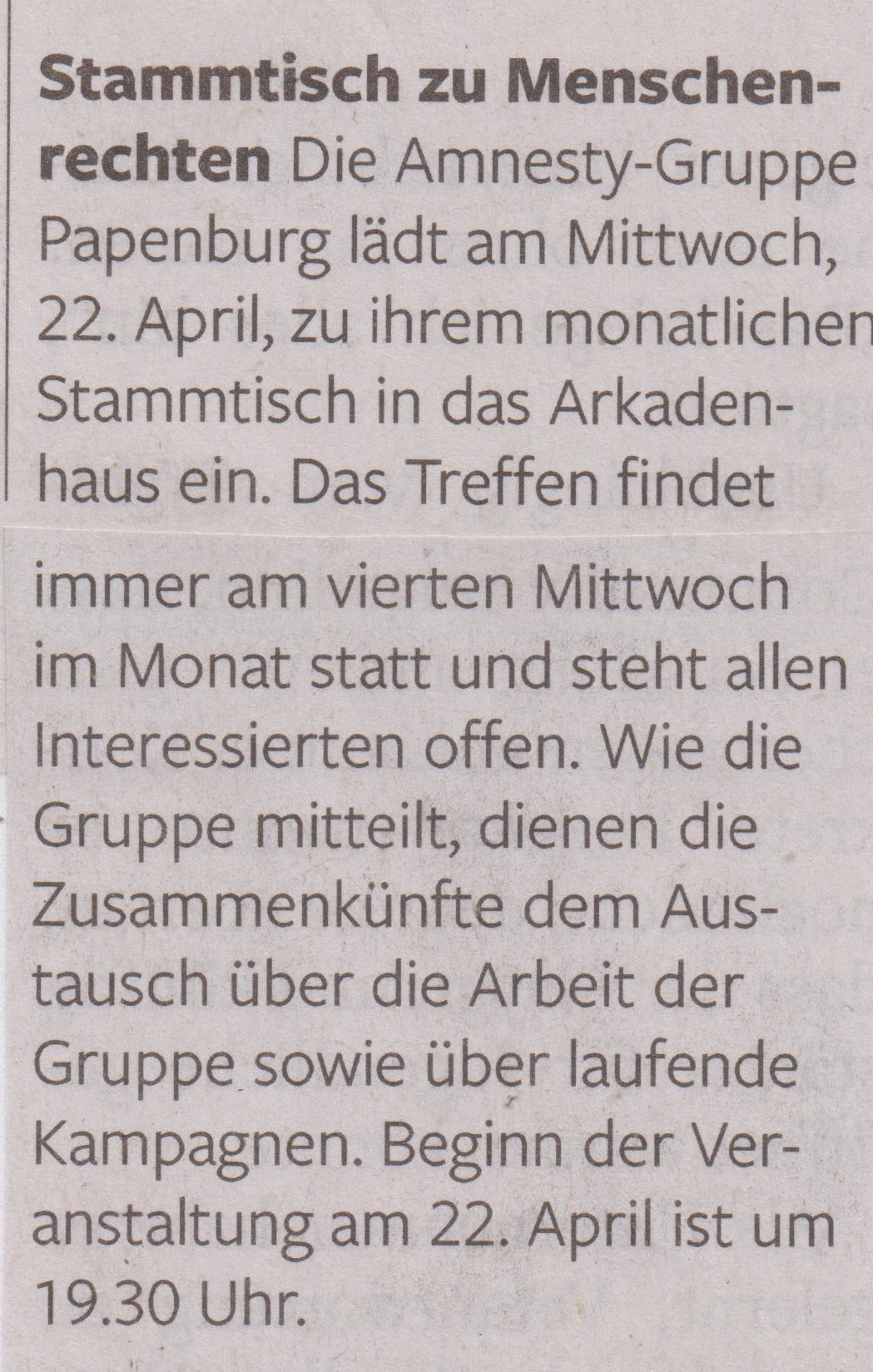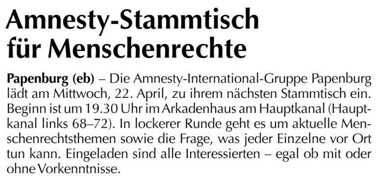 21.04.2026: Stammtisch zu Menschenrechten: Ems Zeitung