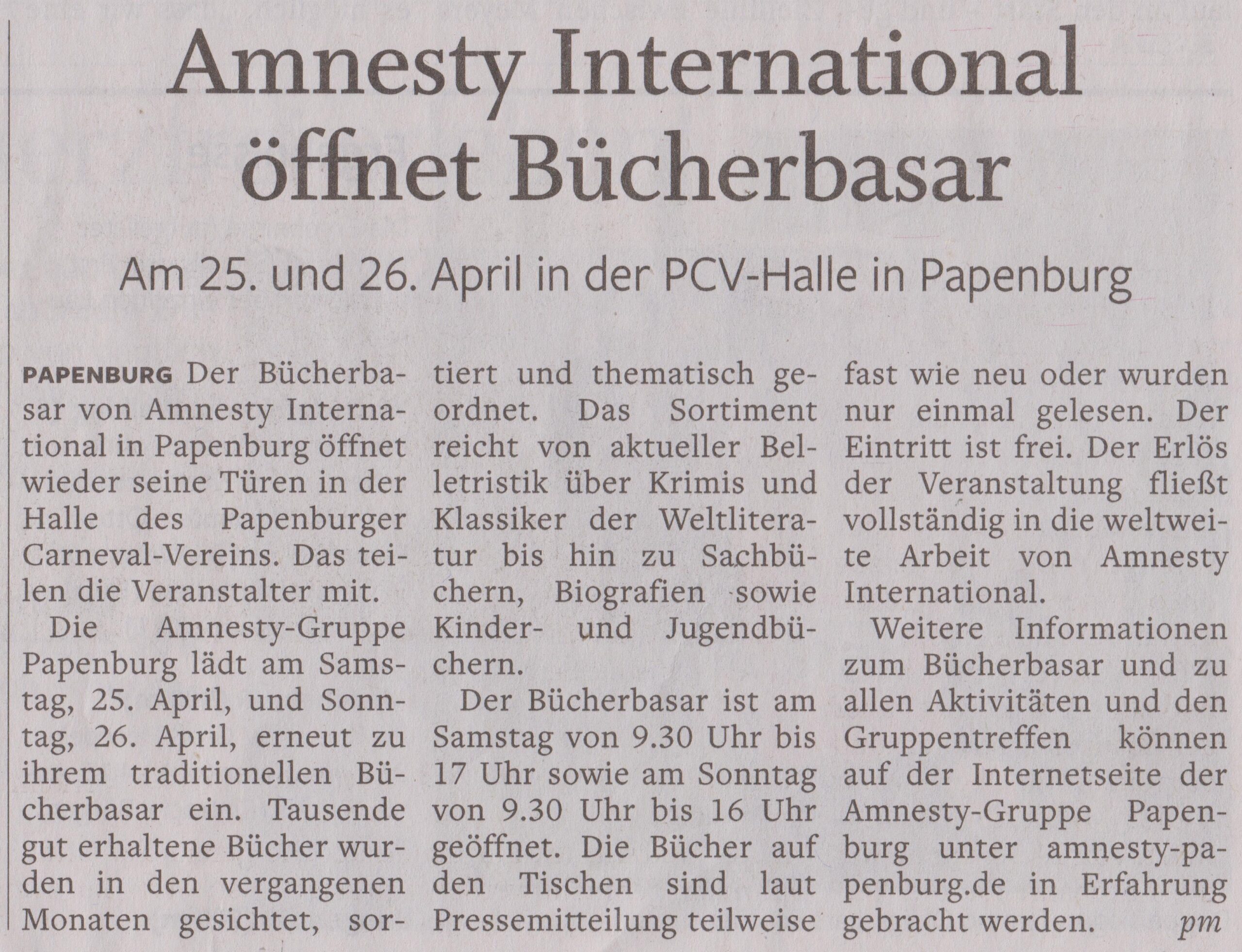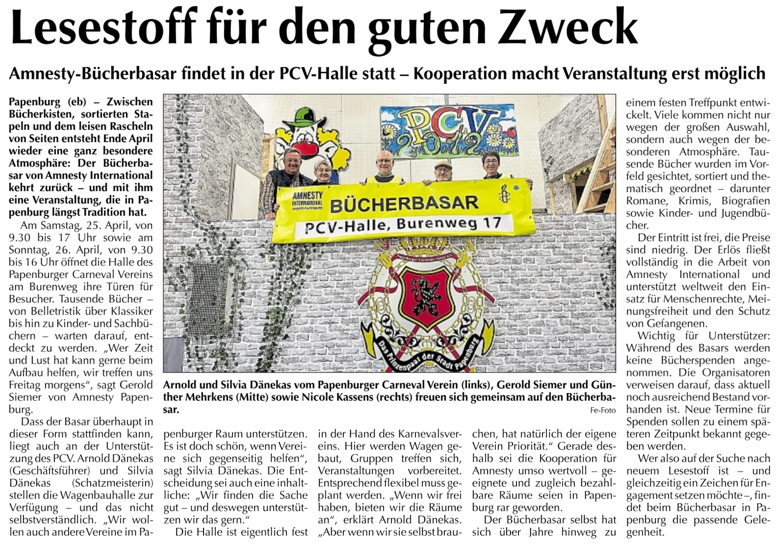 22.04.2026: Amnesty International öffnet Bücherbasar: Ems Zeitung