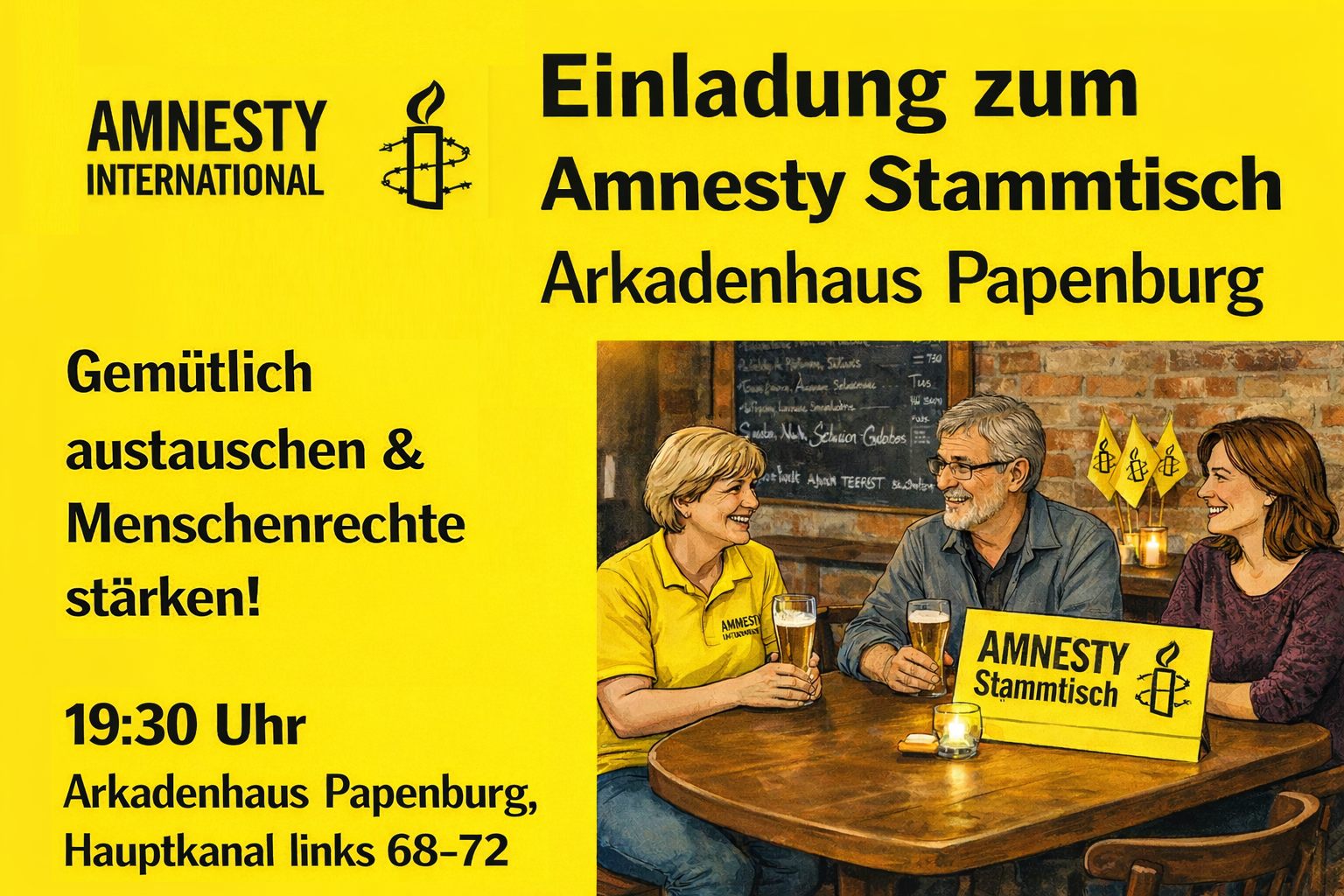 Wir laden Dich, wir laden Sie herzlich zu unserem Stammtisch zu Menschenrechten ein.